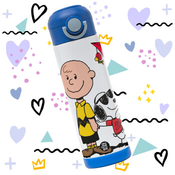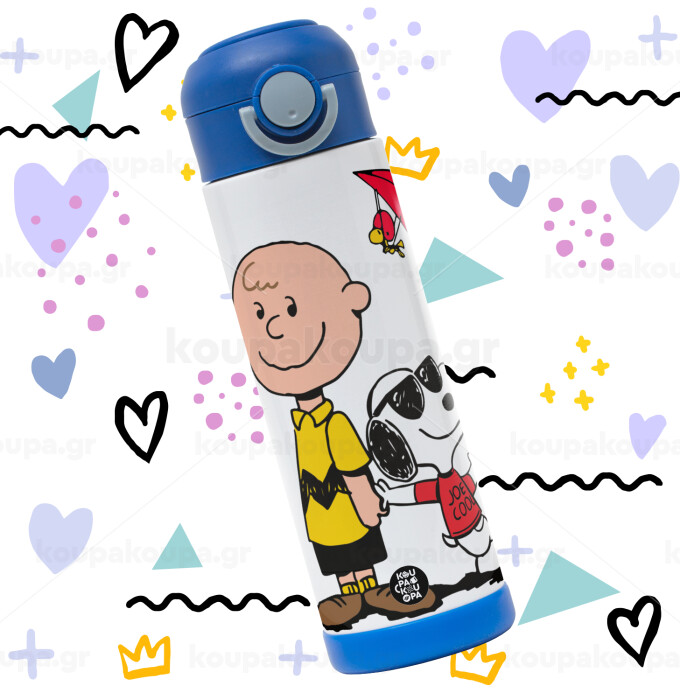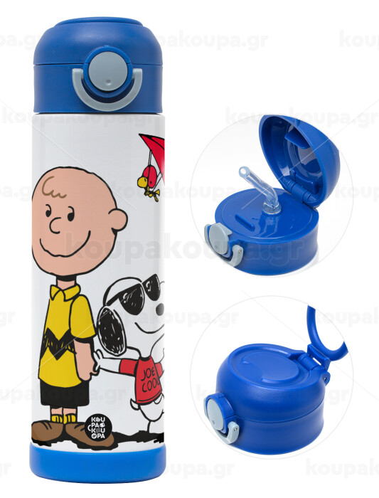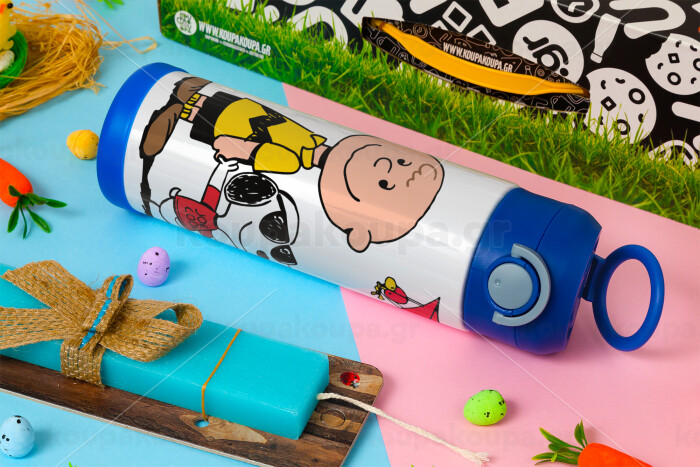 Snoopy & Joe, Πασχαλινή Λαμπάδα με Παιδικό παγούρι θερμό, ανοξείδωτο, με καλαμάκι ασφαλείας, ΜΠΛΕ (500ml)