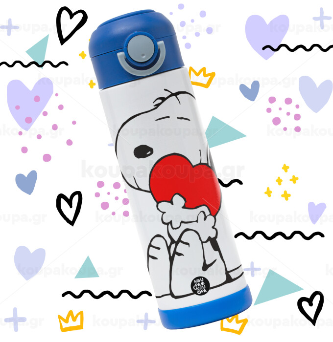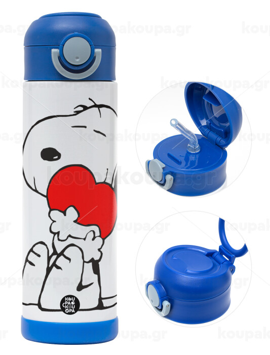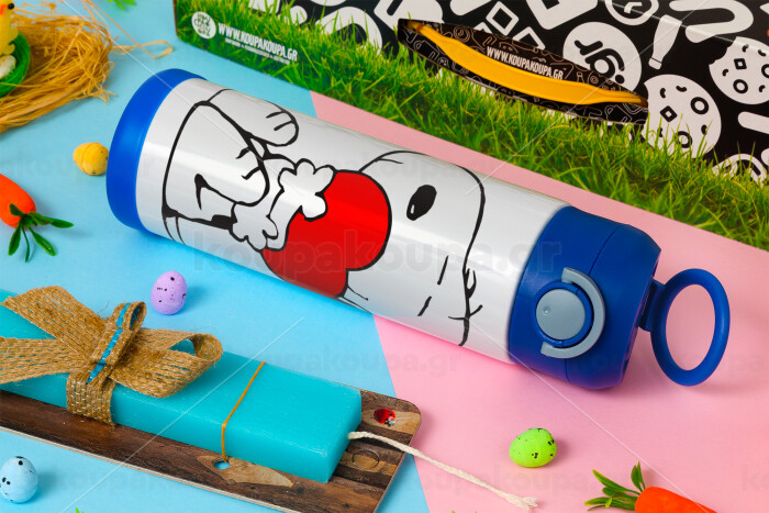 Snoopy, Πασχαλινή Λαμπάδα με Παιδικό παγούρι θερμό, ανοξείδωτο, με καλαμάκι ασφαλείας, ΜΠΛΕ (500ml)