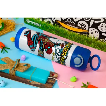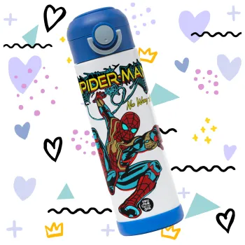 Spiderman no way home, Πασχαλινή Λαμπάδα με Παιδικό παγούρι θερμό, ανοξείδωτο, με καλαμάκι ασφαλείας, ΜΠΛΕ (500ml)