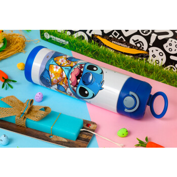 Stitch Ice cream, Πασχαλινή Λαμπάδα με Παιδικό παγούρι θερμό, ανοξείδωτο, με καλαμάκι ασφαλείας, ΜΠΛΕ (500ml)