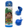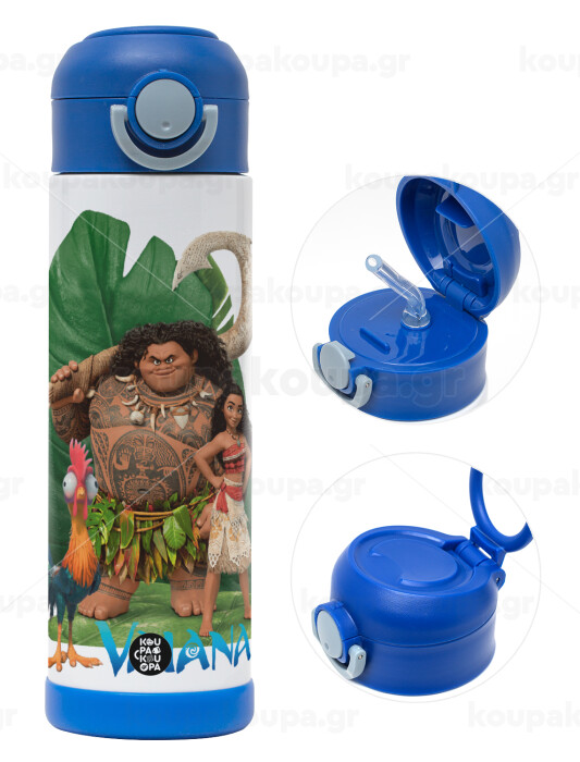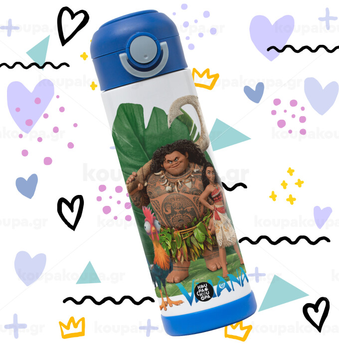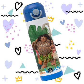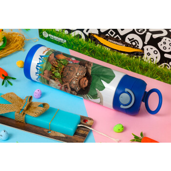 Vaiana, Πασχαλινή Λαμπάδα με Παιδικό παγούρι θερμό, ανοξείδωτο, με καλαμάκι ασφαλείας, ΜΠΛΕ (500ml)