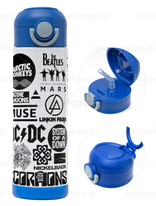 Best Rock Bands Collection, Πασχαλινή Λαμπάδα με Παιδικό παγούρι θερμό, ανοξείδωτο, με καλαμάκι ασφαλείας, ΜΠΛΕ (500ml)