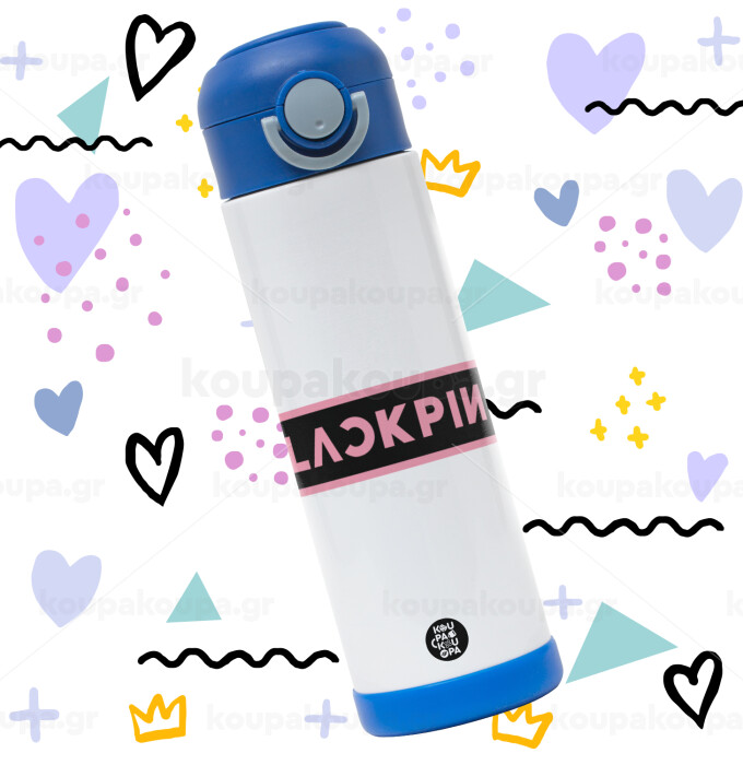 BLACKPINK, Πασχαλινή Λαμπάδα με Παιδικό παγούρι θερμό, ανοξείδωτο, με καλαμάκι ασφαλείας, ΜΠΛΕ (500ml)