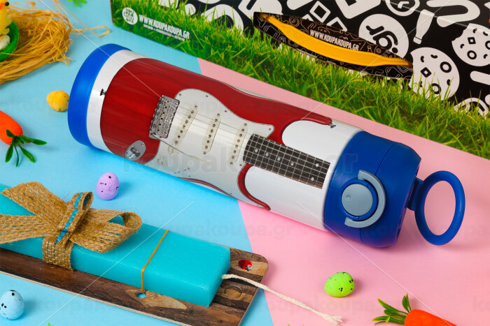 Guitar stratocaster, Πασχαλινή Λαμπάδα με Παιδικό παγούρι θερμό, ανοξείδωτο, με καλαμάκι ασφαλείας, ΜΠΛΕ (500ml)