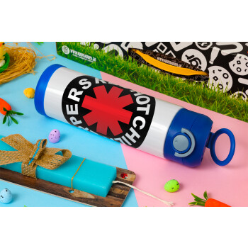 Red Hot Chili Peppers, Πασχαλινή Λαμπάδα με Παιδικό παγούρι θερμό, ανοξείδωτο, με καλαμάκι ασφαλείας, ΜΠΛΕ (500ml)