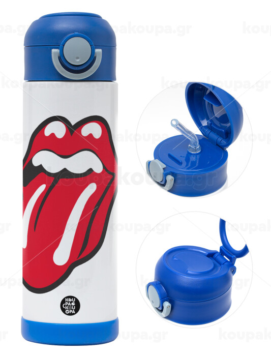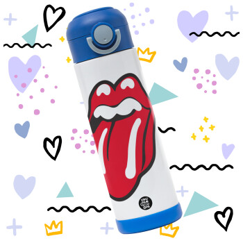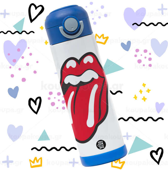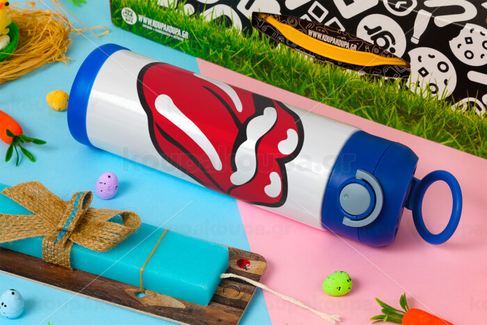 Rolling Stones Kiss, Πασχαλινή Λαμπάδα με Παιδικό παγούρι θερμό, ανοξείδωτο, με καλαμάκι ασφαλείας, ΜΠΛΕ (500ml)