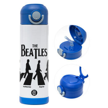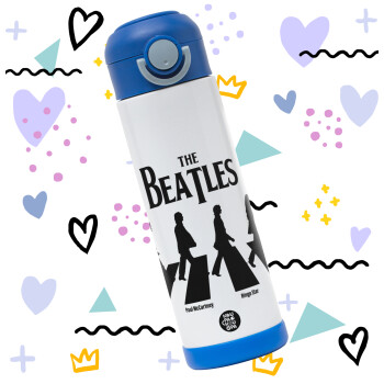 The Beatles, Abbey Road, Πασχαλινή Λαμπάδα με Παιδικό παγούρι θερμό, ανοξείδωτο, με καλαμάκι ασφαλείας, ΜΠΛΕ (500ml)