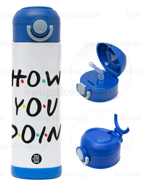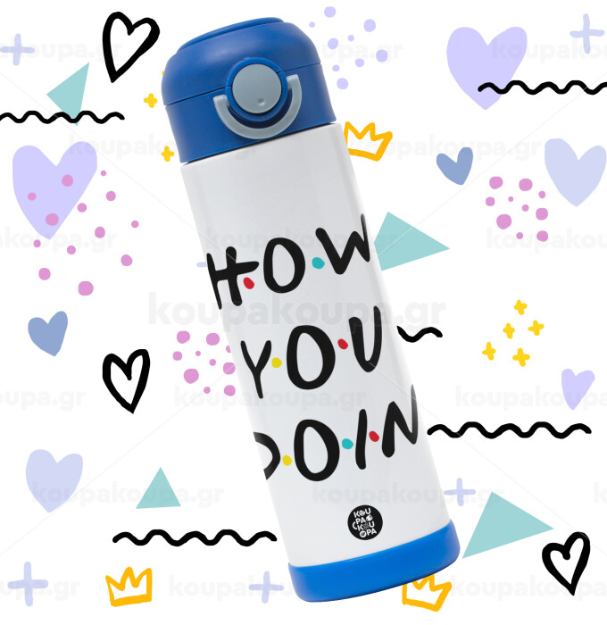 Friends How You Doin'?, Πασχαλινή Λαμπάδα με Παιδικό παγούρι θερμό, ανοξείδωτο, με καλαμάκι ασφαλείας, ΜΠΛΕ (500ml)