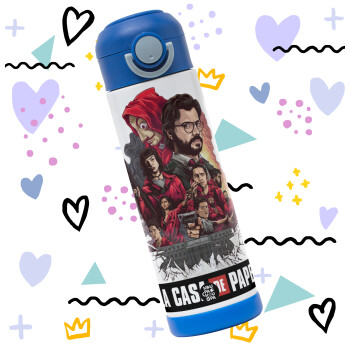 La casa de papel drawing cover, Πασχαλινή Λαμπάδα με Παιδικό παγούρι θερμό, ανοξείδωτο, με καλαμάκι ασφαλείας, ΜΠΛΕ (500ml)