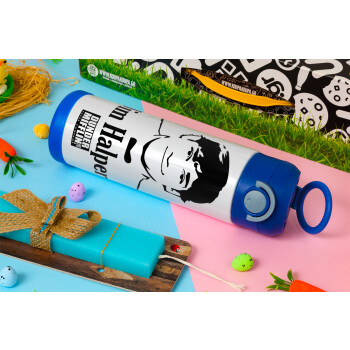 The office Jim Halpert, Πασχαλινή Λαμπάδα με Παιδικό παγούρι θερμό, ανοξείδωτο, με καλαμάκι ασφαλείας, ΜΠΛΕ (500ml)