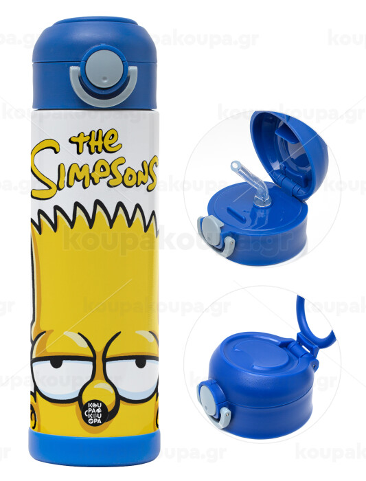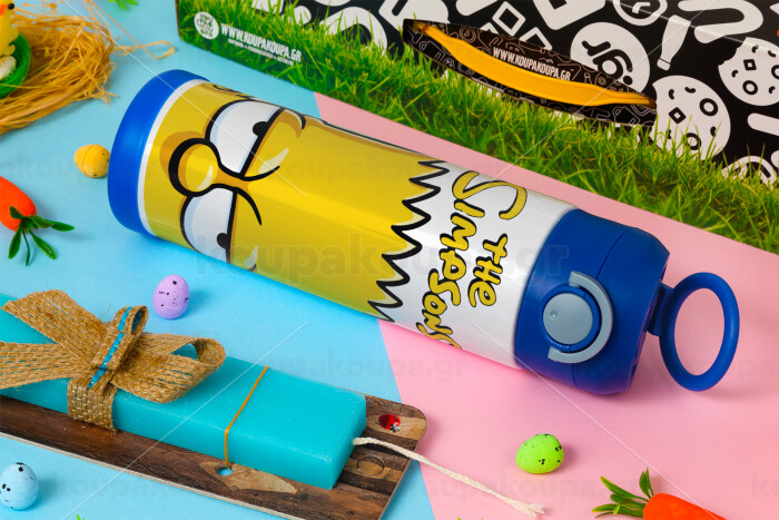 The Simpsons Bart, Πασχαλινή Λαμπάδα με Παιδικό παγούρι θερμό, ανοξείδωτο, με καλαμάκι ασφαλείας, ΜΠΛΕ (500ml)