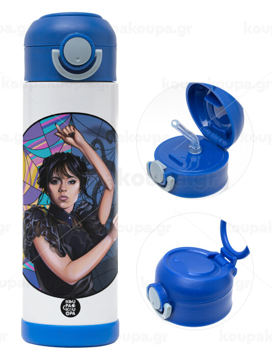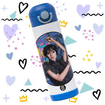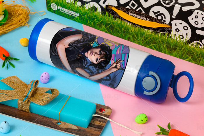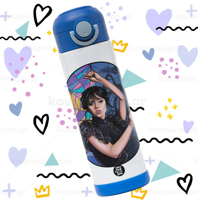 Wednesday dance, Πασχαλινή Λαμπάδα με Παιδικό παγούρι θερμό, ανοξείδωτο, με καλαμάκι ασφαλείας, ΜΠΛΕ (500ml)