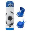 Μπάλα ποδοσφαίρου, Πασχαλινή Λαμπάδα με Παιδικό παγούρι θερμό, ανοξείδωτο, με καλαμάκι ασφαλείας, ΜΠΛΕ (500ml)