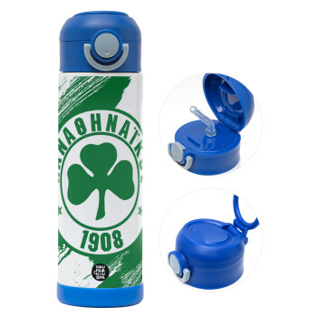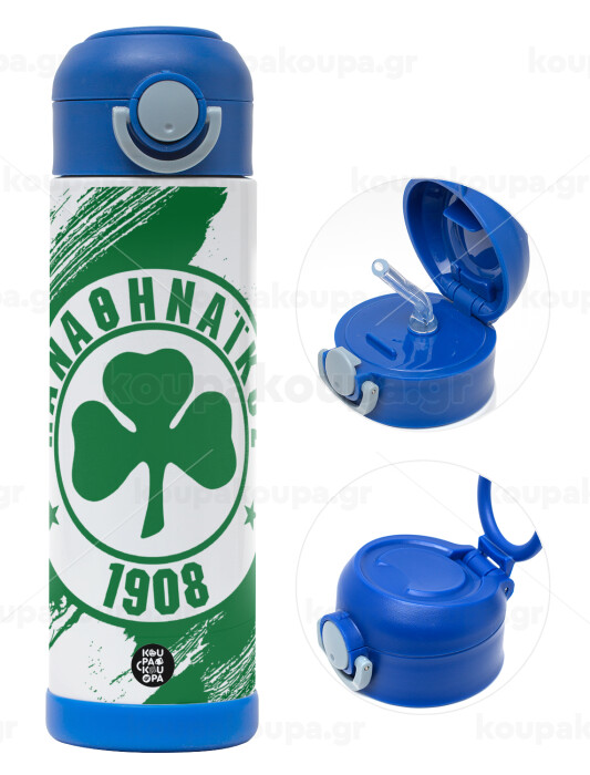 Π.Α.Ο., Πασχαλινή Λαμπάδα με Παιδικό παγούρι θερμό, ανοξείδωτο, με καλαμάκι ασφαλείας, ΜΠΛΕ (500ml)