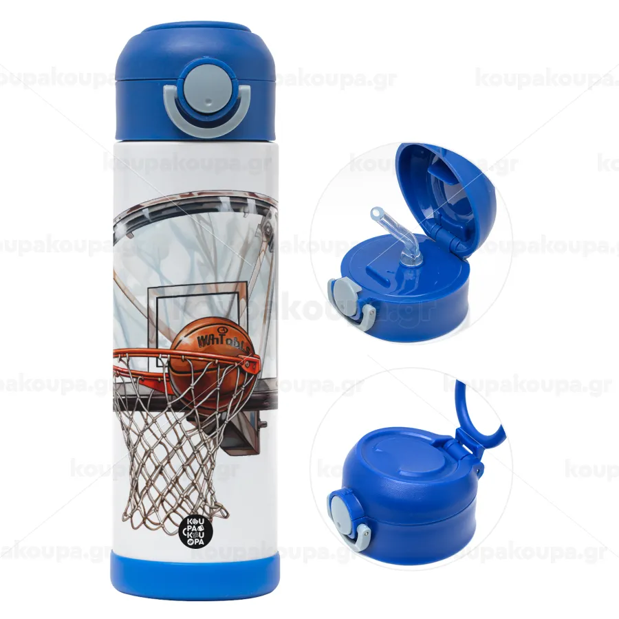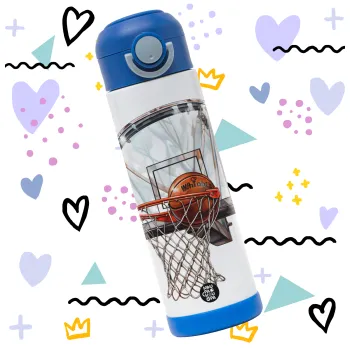 Basketball, Πασχαλινή Λαμπάδα με Παιδικό παγούρι θερμό, ανοξείδωτο, με καλαμάκι ασφαλείας, ΜΠΛΕ (500ml)