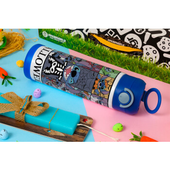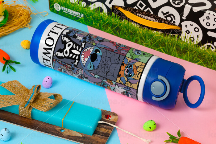 Stitch Halloween, Πασχαλινή Λαμπάδα με Παιδικό παγούρι θερμό, ανοξείδωτο, με καλαμάκι ασφαλείας, ΜΠΛΕ (500ml)