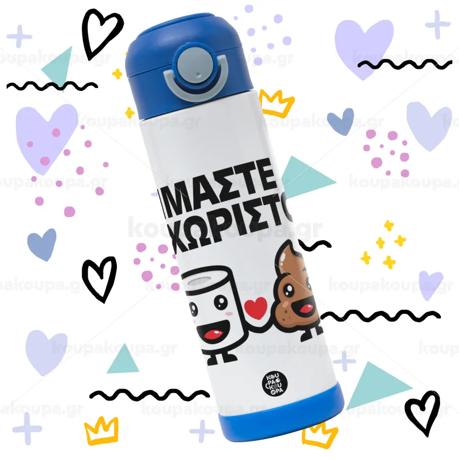 Είμαστε αχώριστοι, Πασχαλινή Λαμπάδα με Παιδικό παγούρι θερμό, ανοξείδωτο, με καλαμάκι ασφαλείας, ΜΠΛΕ (500ml)