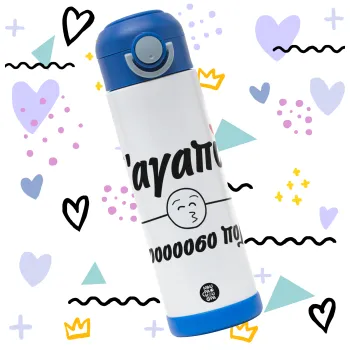 Σ΄ αγαπώ τόοοοοοσο πολύ!!!, Πασχαλινή Λαμπάδα με Παιδικό παγούρι θερμό, ανοξείδωτο, με καλαμάκι ασφαλείας, ΜΠΛΕ (500ml)