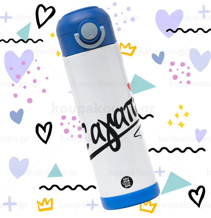 Σ΄ αγαπώ!!!, Πασχαλινή Λαμπάδα με Παιδικό παγούρι θερμό, ανοξείδωτο, με καλαμάκι ασφαλείας, ΜΠΛΕ (500ml)