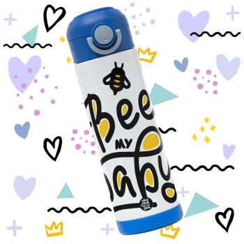Bee my BABY!!!, Πασχαλινή Λαμπάδα με Παιδικό παγούρι θερμό, ανοξείδωτο, με καλαμάκι ασφαλείας, ΜΠΛΕ (500ml)