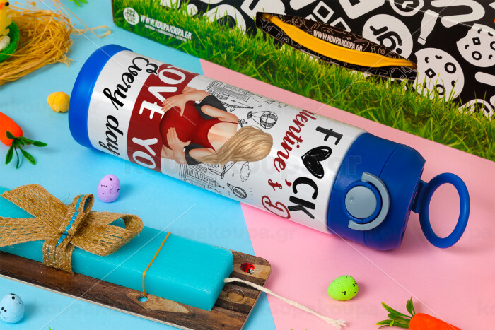 I love You Everyday , Πασχαλινή Λαμπάδα με Παιδικό παγούρι θερμό, ανοξείδωτο, με καλαμάκι ασφαλείας, ΜΠΛΕ (500ml)
