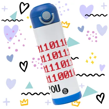 I .... YOU, binary secret MSG, Πασχαλινή Λαμπάδα με Παιδικό παγούρι θερμό, ανοξείδωτο, με καλαμάκι ασφαλείας, ΜΠΛΕ (500ml)