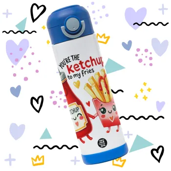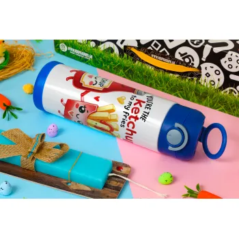 Ketchup To My Fries, Πασχαλινή Λαμπάδα με Παιδικό παγούρι θερμό, ανοξείδωτο, με καλαμάκι ασφαλείας, ΜΠΛΕ (500ml)