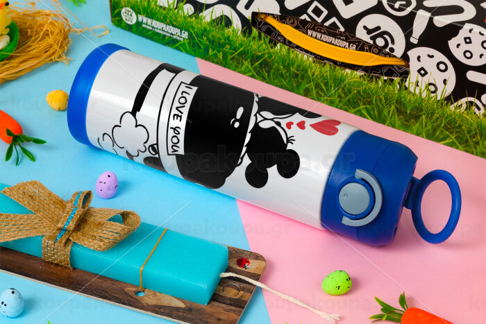 Love Car, Πασχαλινή Λαμπάδα με Παιδικό παγούρι θερμό, ανοξείδωτο, με καλαμάκι ασφαλείας, ΜΠΛΕ (500ml)