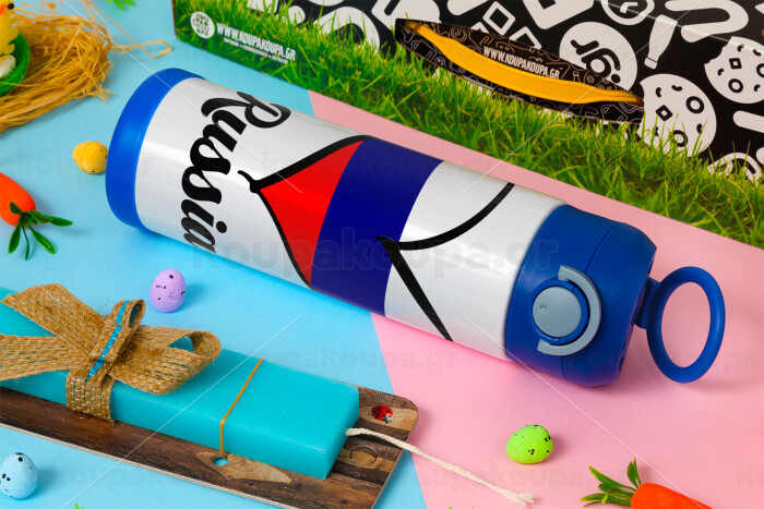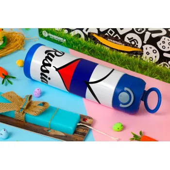 Russia flag, Πασχαλινή Λαμπάδα με Παιδικό παγούρι θερμό, ανοξείδωτο, με καλαμάκι ασφαλείας, ΜΠΛΕ (500ml)
