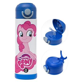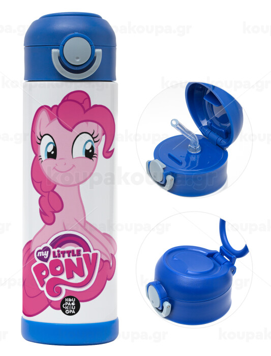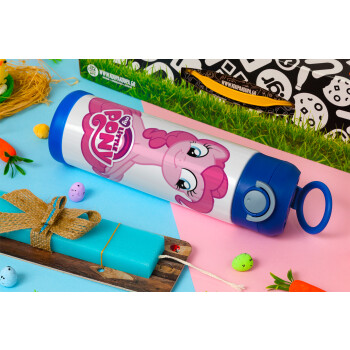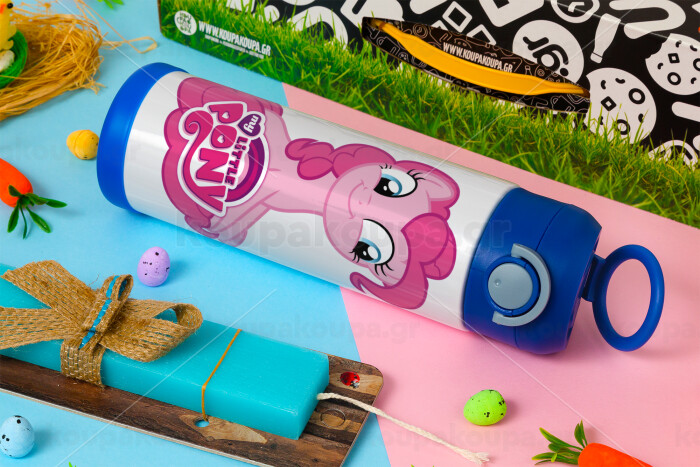 Μικρό μου Πόνυ, Πασχαλινή Λαμπάδα με Παιδικό παγούρι θερμό, ανοξείδωτο, με καλαμάκι ασφαλείας, ΜΠΛΕ (500ml)