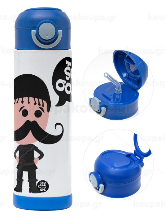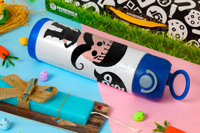 Κρητικός "Ξα σου", Πασχαλινή Λαμπάδα με Παιδικό παγούρι θερμό, ανοξείδωτο, με καλαμάκι ασφαλείας, ΜΠΛΕ (500ml)