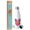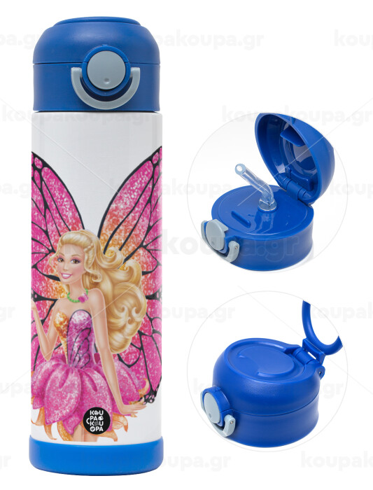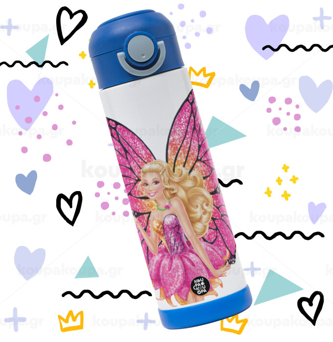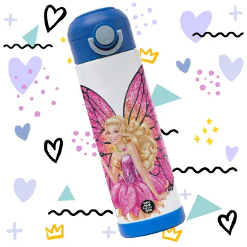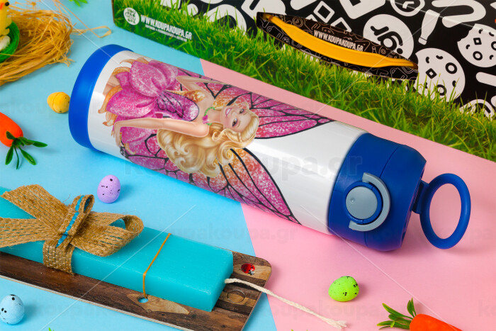 Barbie Νεράιδα, Πασχαλινή Λαμπάδα με Παιδικό παγούρι θερμό, ανοξείδωτο, με καλαμάκι ασφαλείας, ΜΠΛΕ (500ml)