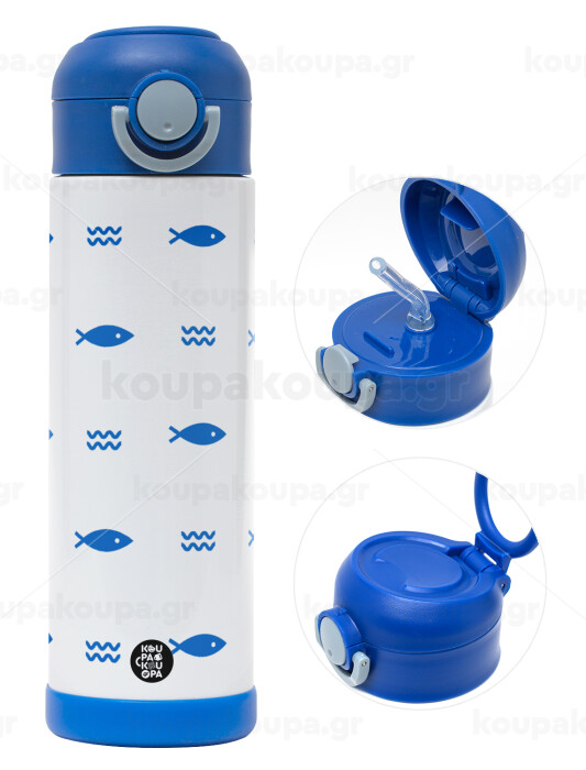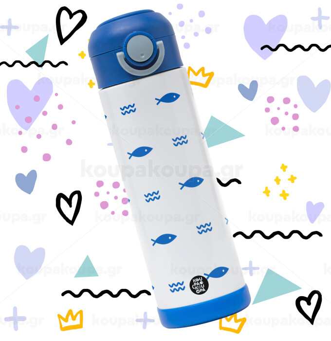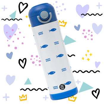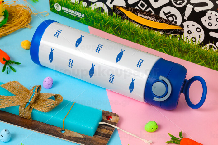 Ψαράκια, Πασχαλινή Λαμπάδα με Παιδικό παγούρι θερμό, ανοξείδωτο, με καλαμάκι ασφαλείας, ΜΠΛΕ (500ml)