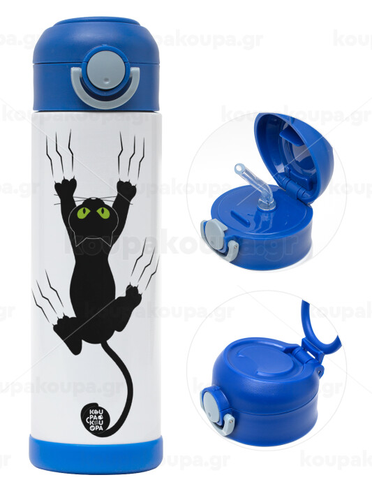 Γατούλα γρατζουνιά, Πασχαλινή Λαμπάδα με Παιδικό παγούρι θερμό, ανοξείδωτο, με καλαμάκι ασφαλείας, ΜΠΛΕ (500ml)