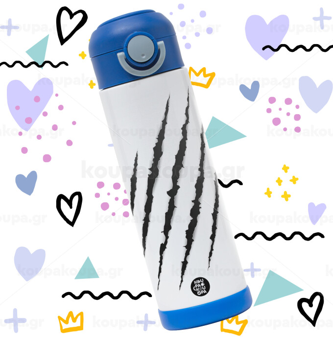 Claw scratch, Πασχαλινή Λαμπάδα με Παιδικό παγούρι θερμό, ανοξείδωτο, με καλαμάκι ασφαλείας, ΜΠΛΕ (500ml)