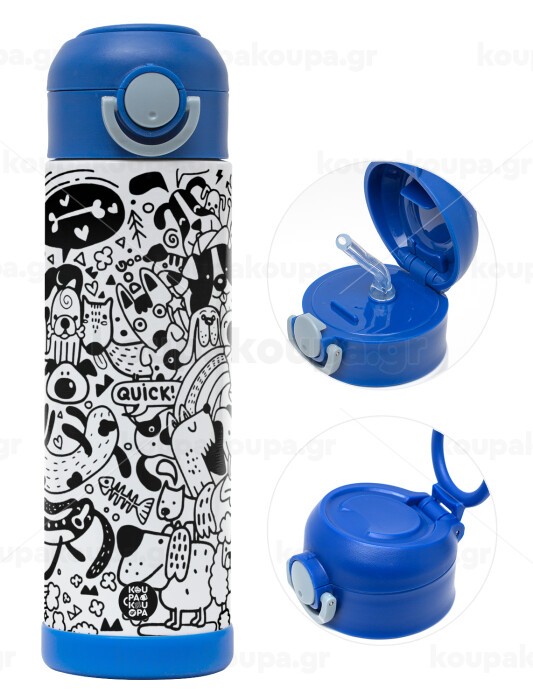 Σκυλάκια, Πασχαλινή Λαμπάδα με Παιδικό παγούρι θερμό, ανοξείδωτο, με καλαμάκι ασφαλείας, ΜΠΛΕ (500ml)