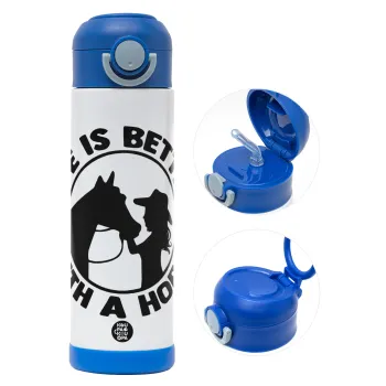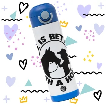 Life is Better with a Horse, Πασχαλινή Λαμπάδα με Παιδικό παγούρι θερμό, ανοξείδωτο, με καλαμάκι ασφαλείας, ΜΠΛΕ (500ml)