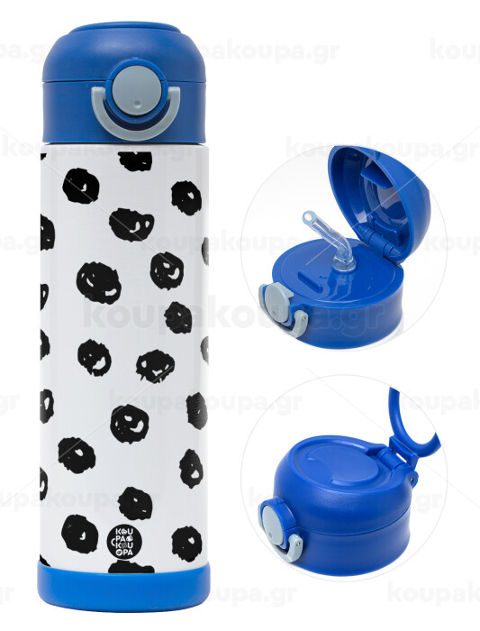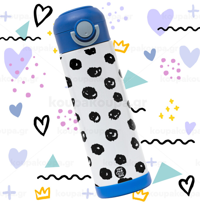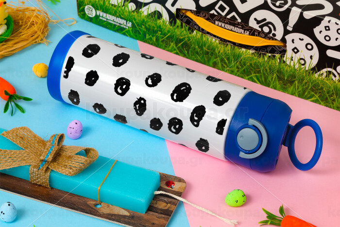 Doodle Dots, Πασχαλινή Λαμπάδα με Παιδικό παγούρι θερμό, ανοξείδωτο, με καλαμάκι ασφαλείας, ΜΠΛΕ (500ml)