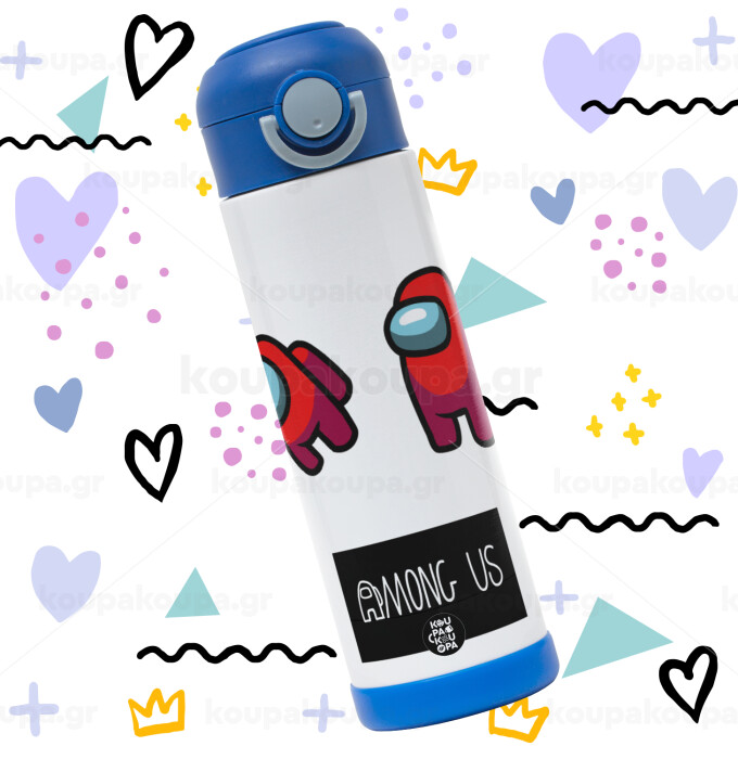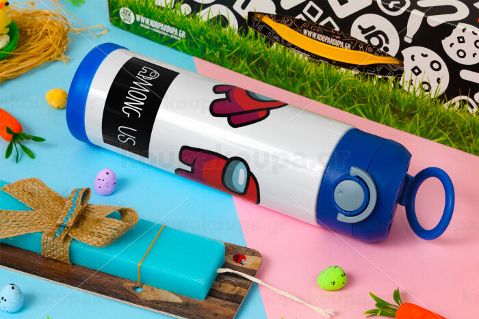 Among US, Πασχαλινή Λαμπάδα με Παιδικό παγούρι θερμό, ανοξείδωτο, με καλαμάκι ασφαλείας, ΜΠΛΕ (500ml)
