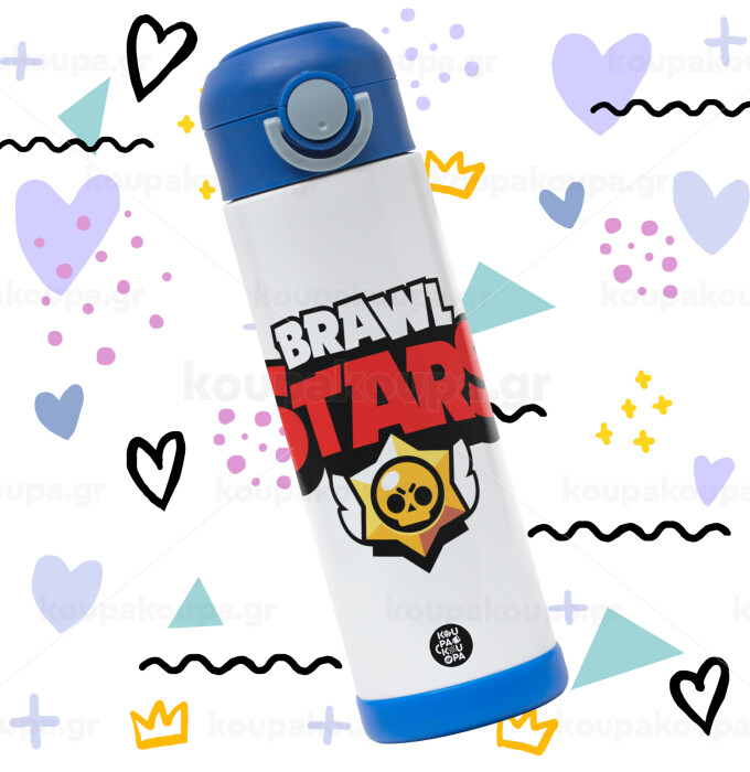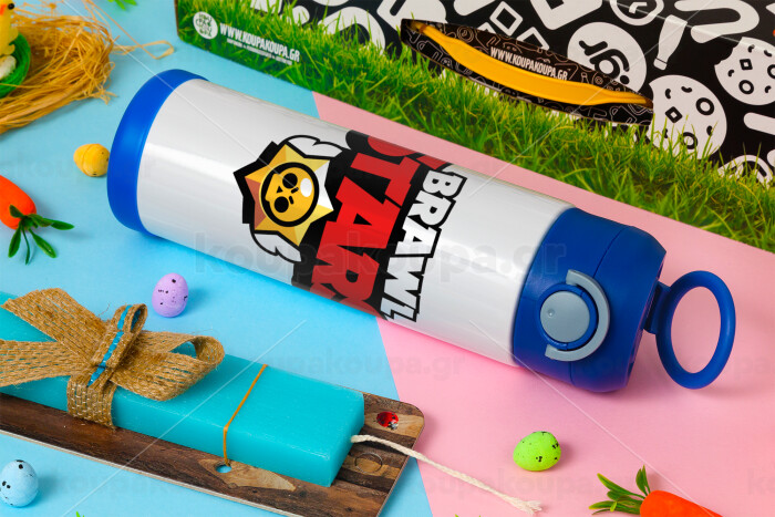 Brawl Stars, Πασχαλινή Λαμπάδα με Παιδικό παγούρι θερμό, ανοξείδωτο, με καλαμάκι ασφαλείας, ΜΠΛΕ (500ml)