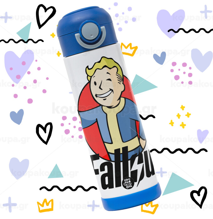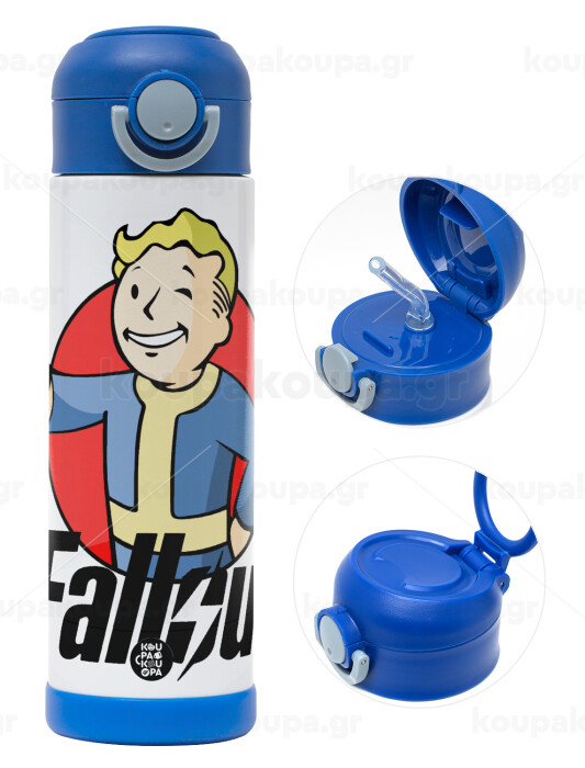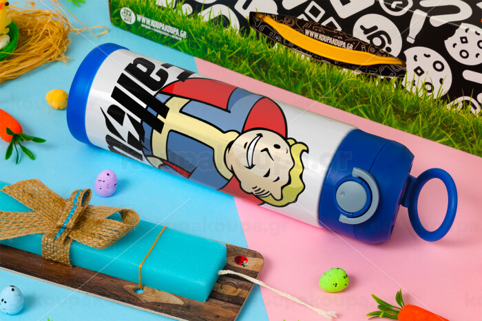Fallout Vault Boy, Πασχαλινή Λαμπάδα με Παιδικό παγούρι θερμό, ανοξείδωτο, με καλαμάκι ασφαλείας, ΜΠΛΕ (500ml)