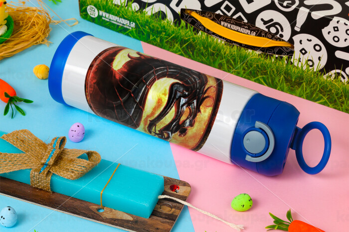 Mortal Kombat, Πασχαλινή Λαμπάδα με Παιδικό παγούρι θερμό, ανοξείδωτο, με καλαμάκι ασφαλείας, ΜΠΛΕ (500ml)