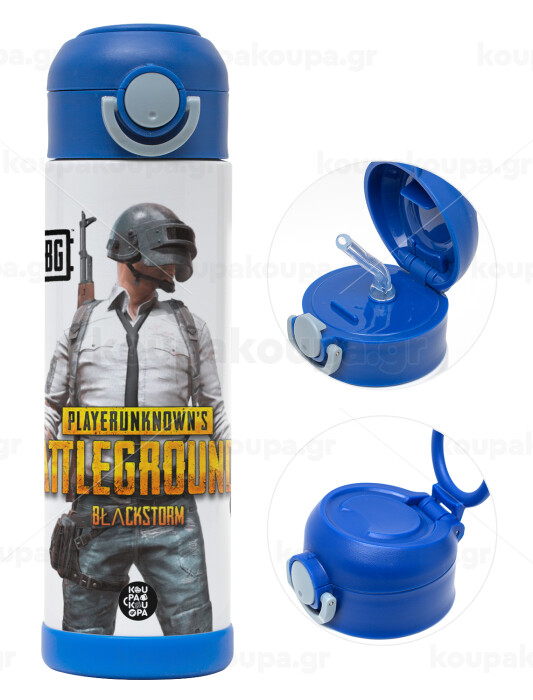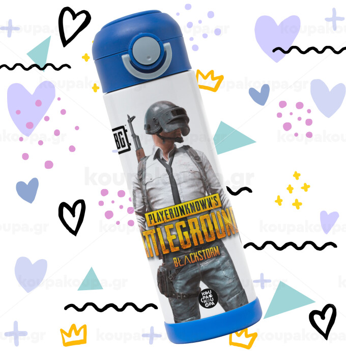 PUBG battleground royale, Πασχαλινή Λαμπάδα με Παιδικό παγούρι θερμό, ανοξείδωτο, με καλαμάκι ασφαλείας, ΜΠΛΕ (500ml)