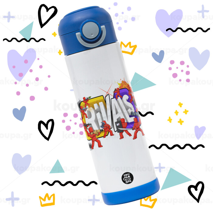 Ανοξείδωτο Θερμό Μπουκάλι για Παιδιά - Η Ασφαλής και Πράσινη Επιλογή! Τέλος τα πλαστικά μπουκάλια! Παρουσιάζουμε το απόλυτο μπουκάλι θερμό για τα παιδιά σας! Κατασκευασμένο από ανοξείδωτο ατσάλι, το μπουκάλι μας χωράει 500ml υγρό και είναι ιδανικό για το σχολείο και τις υπαίθριες δραστηριότητες. Με το απαλό άκρο, οι μικροί μας φίλοι μπορούν να πίνουν κατευθείαν από το μπουκάλι χωρίς καλαμάκι. Το ευρύ άνοιγμα του μας επιτρέπει να το καθαρίσουμε εύκολα για άψογη υγιεινή! Λαβή για εύκολη μεταφορά, καπάκι βιδωτό για ασφάλεια και λαβή για άνετο κράτημα. Επίσης, το μπουκάλι μας είναι BPA FREE, διατηρεί το πόσιμο δροσερό και δροσιστικό έξω από το ψυγείο. Κάντε την πράσινη επιλογή για τα παιδιά σας! Προμηθευτείτε το δικό σας ανοξείδωτο θερμό μπουκάλι τώρα!