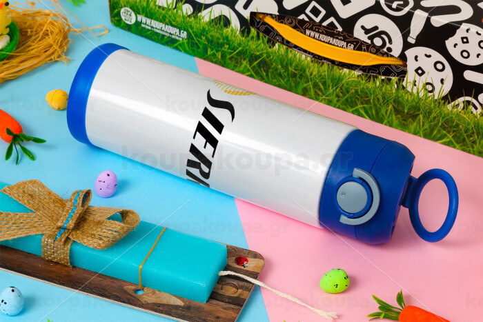 SIERRA, Πασχαλινή Λαμπάδα με Παιδικό παγούρι θερμό, ανοξείδωτο, με καλαμάκι ασφαλείας, ΜΠΛΕ (500ml)
