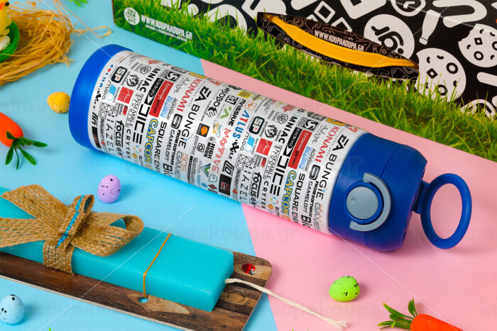 Video Game Studio Logos, Πασχαλινή Λαμπάδα με Παιδικό παγούρι θερμό, ανοξείδωτο, με καλαμάκι ασφαλείας, ΜΠΛΕ (500ml)