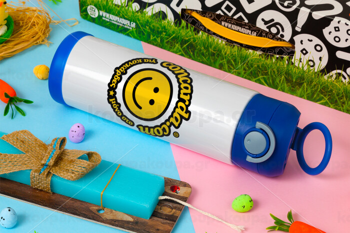 Concarda, Πασχαλινή Λαμπάδα με Παιδικό παγούρι θερμό, ανοξείδωτο, με καλαμάκι ασφαλείας, ΜΠΛΕ (500ml)