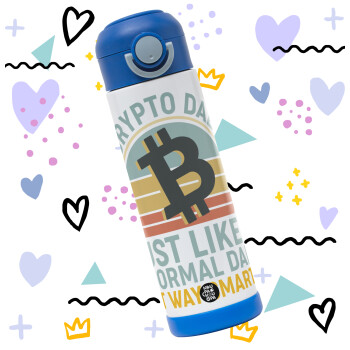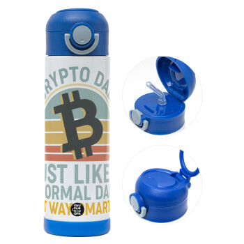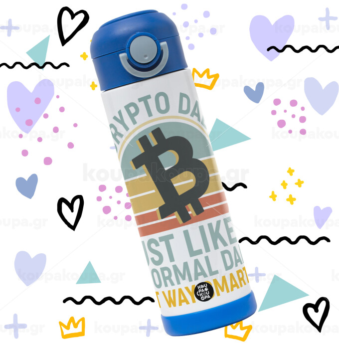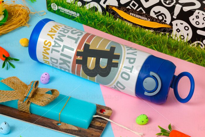 Crypto Dad, Πασχαλινή Λαμπάδα με Παιδικό παγούρι θερμό, ανοξείδωτο, με καλαμάκι ασφαλείας, ΜΠΛΕ (500ml)