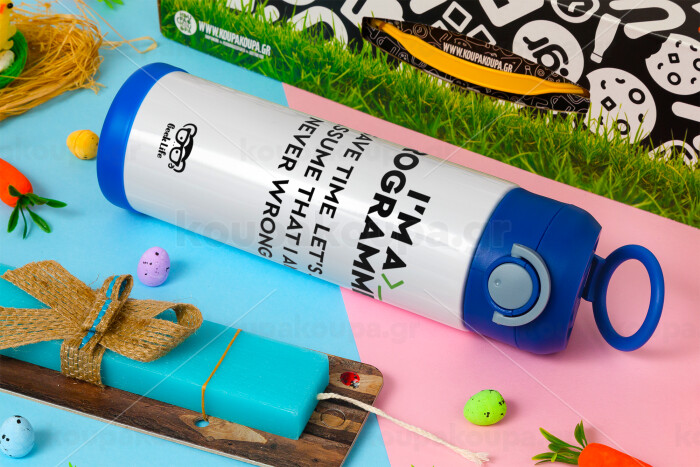 I’m a programmer Save time, Πασχαλινή Λαμπάδα με Παιδικό παγούρι θερμό, ανοξείδωτο, με καλαμάκι ασφαλείας, ΜΠΛΕ (500ml)
