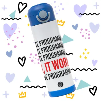 I hate programming!!!, Πασχαλινή Λαμπάδα με Παιδικό παγούρι θερμό, ανοξείδωτο, με καλαμάκι ασφαλείας, ΜΠΛΕ (500ml)